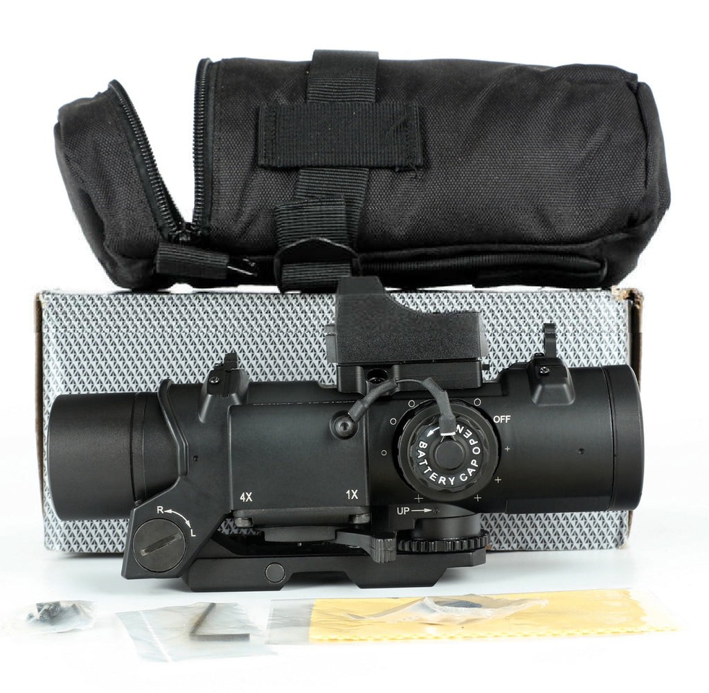 1x-4x fixed retical with RED and GREEN illumination,wide angle is just with red illuminated