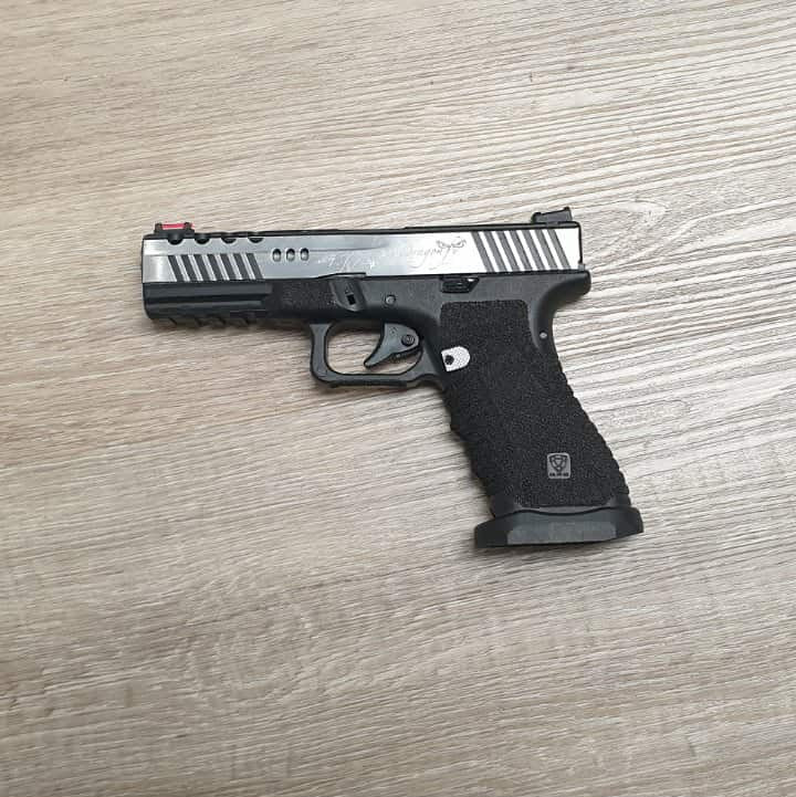 CNC Racing Style Slide / Fiber Optics Sights / Stippling on the Grip / Magwell / Aftermarket Holster Compatible / Dual Power Source
