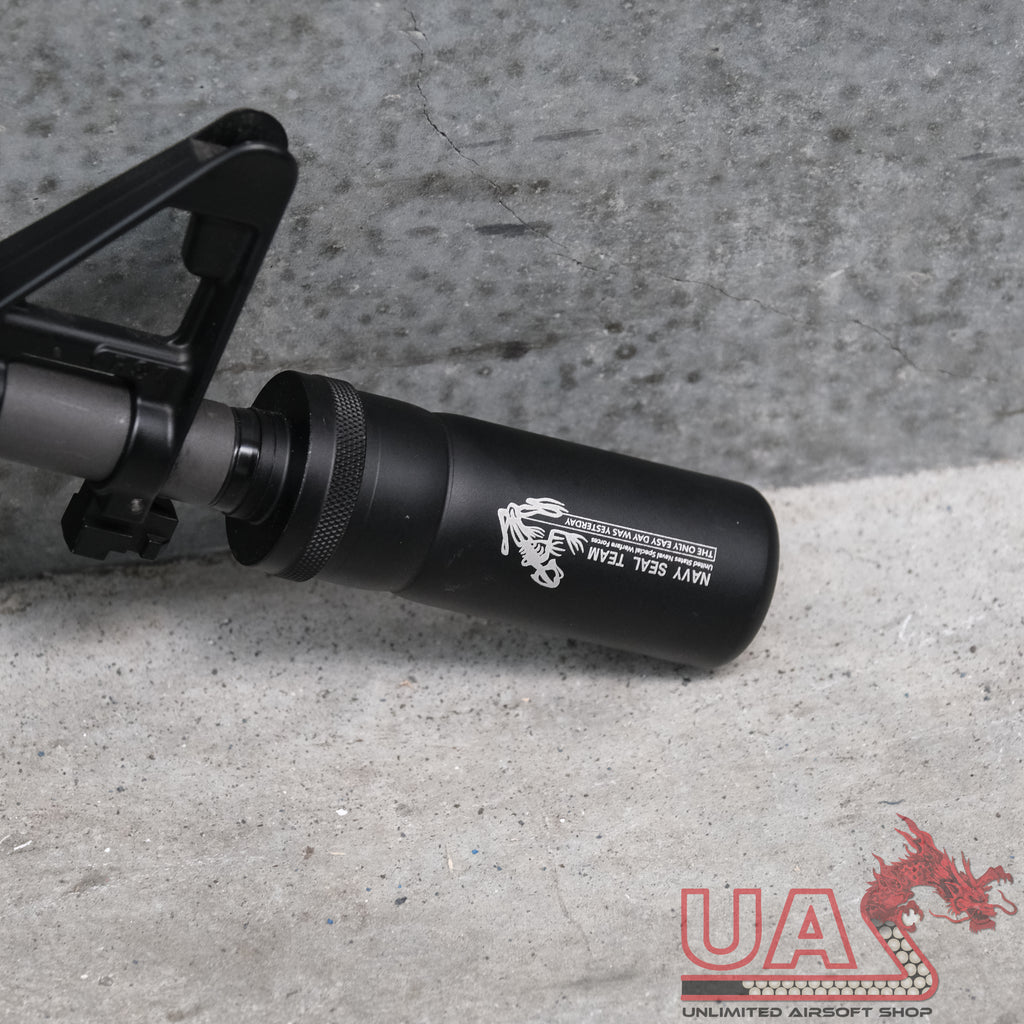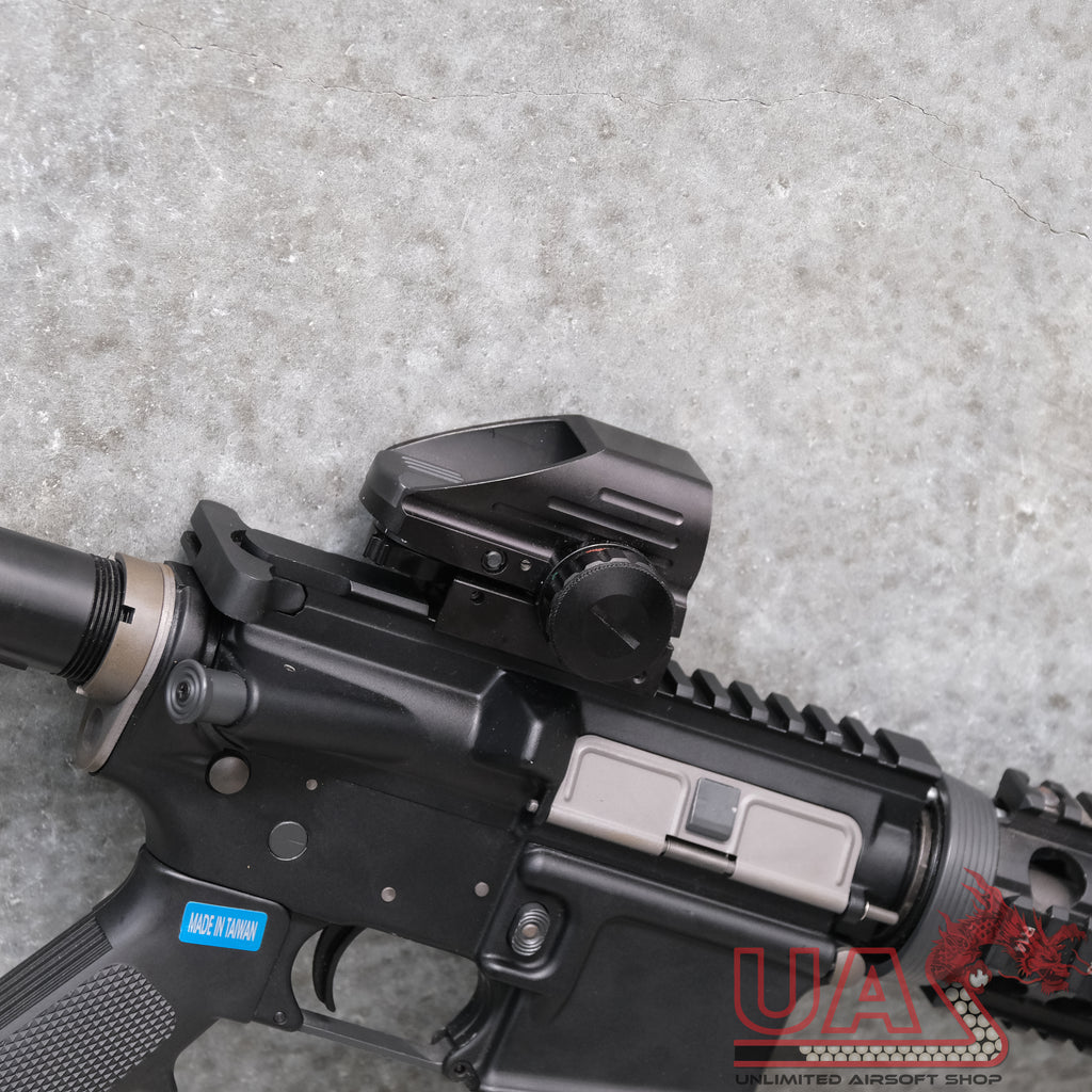 Comes preinstalled with a red dot, suppressor, and angled foregrip!
